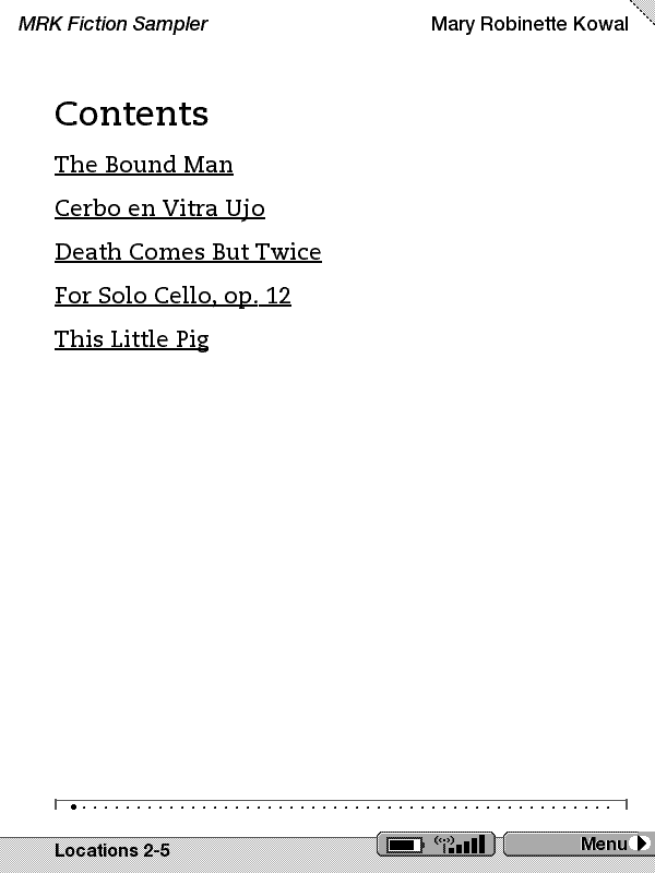 13 thoughts on “Considerations in the Making of eBooks: MRK’s Fiction Sampler