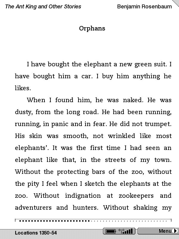 So I ran into Benjamin Rosenbaum’s blog post about his story collection, The Ant King and Other Stories (hat tip to the inimitable Boing Boing). I read “Orphans”, and decided that this collection needed to be on my Kindle to peruse in the coming weeks. But while there were other formats available, there wasn’t one friendly to my Kindle.
