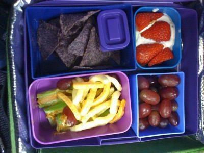 Celery with peanut butter; 9 calories and 190 calories. Also veggie stix (70 calories), but (a) I forgot they would get soggy, and (b) I forgot to check whether they had wheat. They do. Argh, I even felt it before asking Twitter to check (thanks, Cori!). Cleaning out tonsils tonight and tomorrow. :-/
