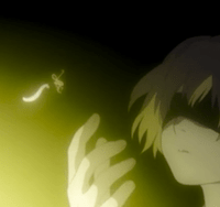A young girl, Sui, is infected with a mushi strain that inhabits the eyes (yes, this is an Eye Scream episode), causing the slightest bit of light to bring her intense pain. Her family leaves her in the care of relatives with a solid storage shed, and the son, Biki, plays with her and keeps “the light of her heart” going. Unfortunately, he too contracts the infection, and it’s up to Gingko’s arrival to salvage the situation.