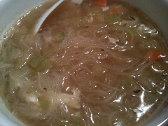 Food: I cooked up a bunch of rice noodles for later use in various dishes, like this impromptu soup. You can actually do this without much trouble, as shown in Quick & Easy Thai: